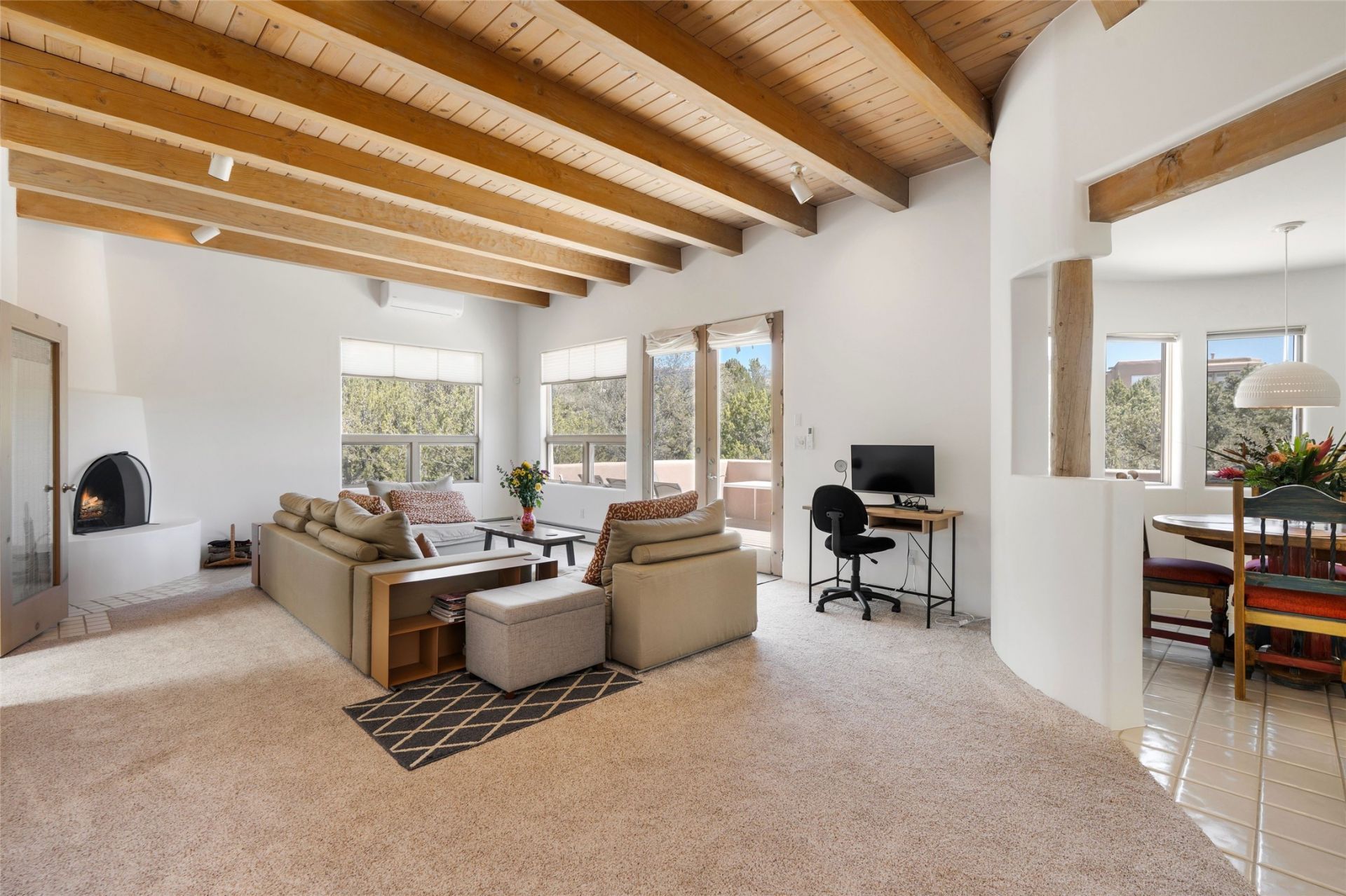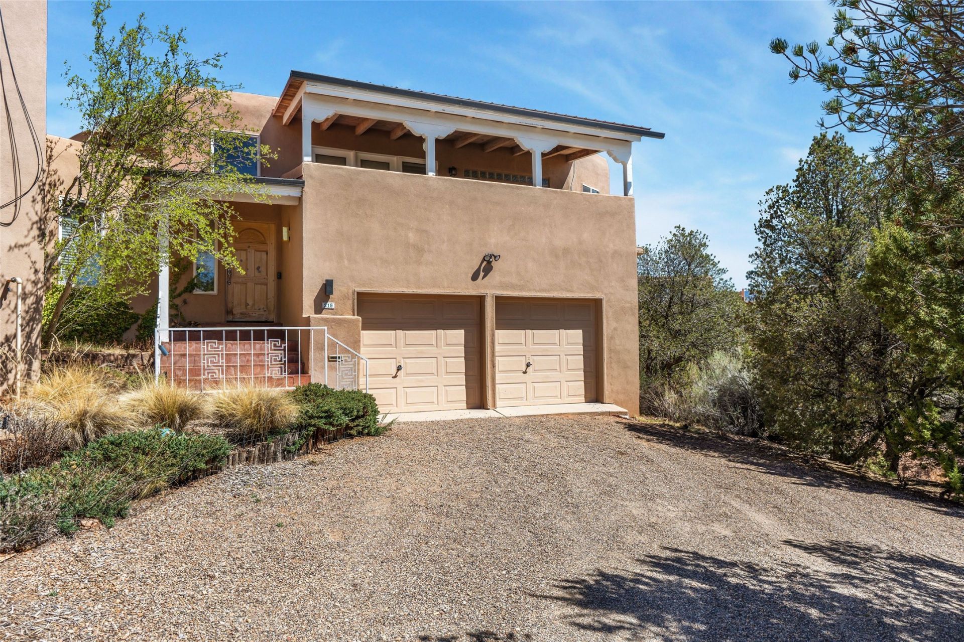 Just moments from the historic Santa Fe Plaza and a short stroll to the new Fort Marcy pickleball courts, this warm and light-filled residence blends classic Santa Fe character with modern comfort. High ceilings with exposed beams, abundant natural light, and two traditional kiva wood-burning fireplaces create an atmosphere that feels both timeless and welcoming. The home features 2 bedrooms, 2 baths, and an additional den?perfect as a home office, studio, or easily converted into a third bedroom. The spacious upper-level primary suite is a true retreat, complete with its own private deck overlooking Sun and Moon Mountain. Outdoor living is exceptional here, with two generous decks offering peaceful views of the surrounding hills and mountains. Whether you're enjoying morning coffee or sunset skies, the setting is pure Santa Fe serenity. A rare 2-car garage, newly added air conditioning, and an on-demand hot water heater round out the home's practical upgrades, making it as comfortable as it is charming. The furnishings are also available separately from the real property; making this a turnkey property. This is a special opportunity to live in one of Santa Fe's most desirable walkable locations?close to culture, recreation, and the natural beauty that defines the City Different.
